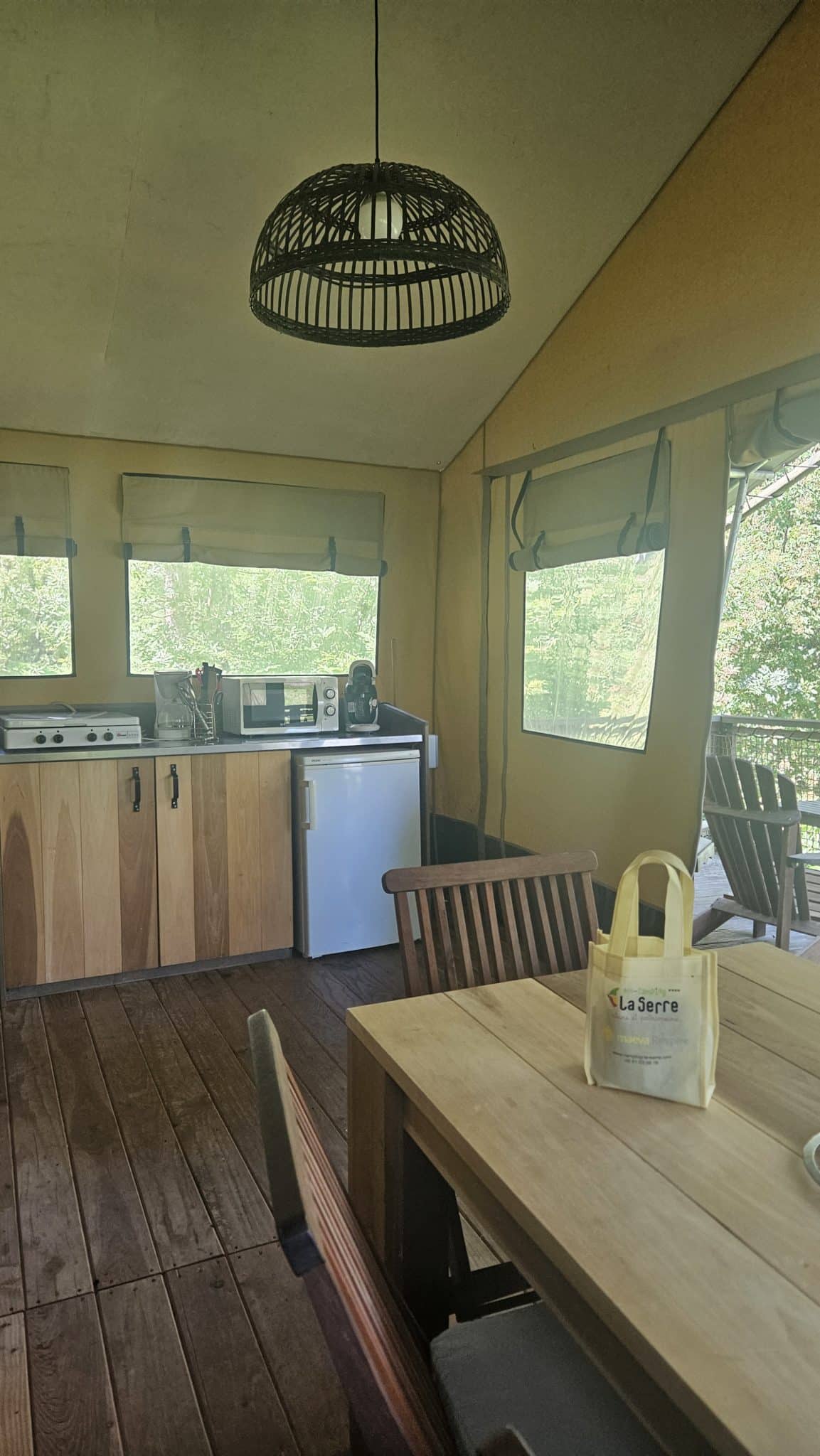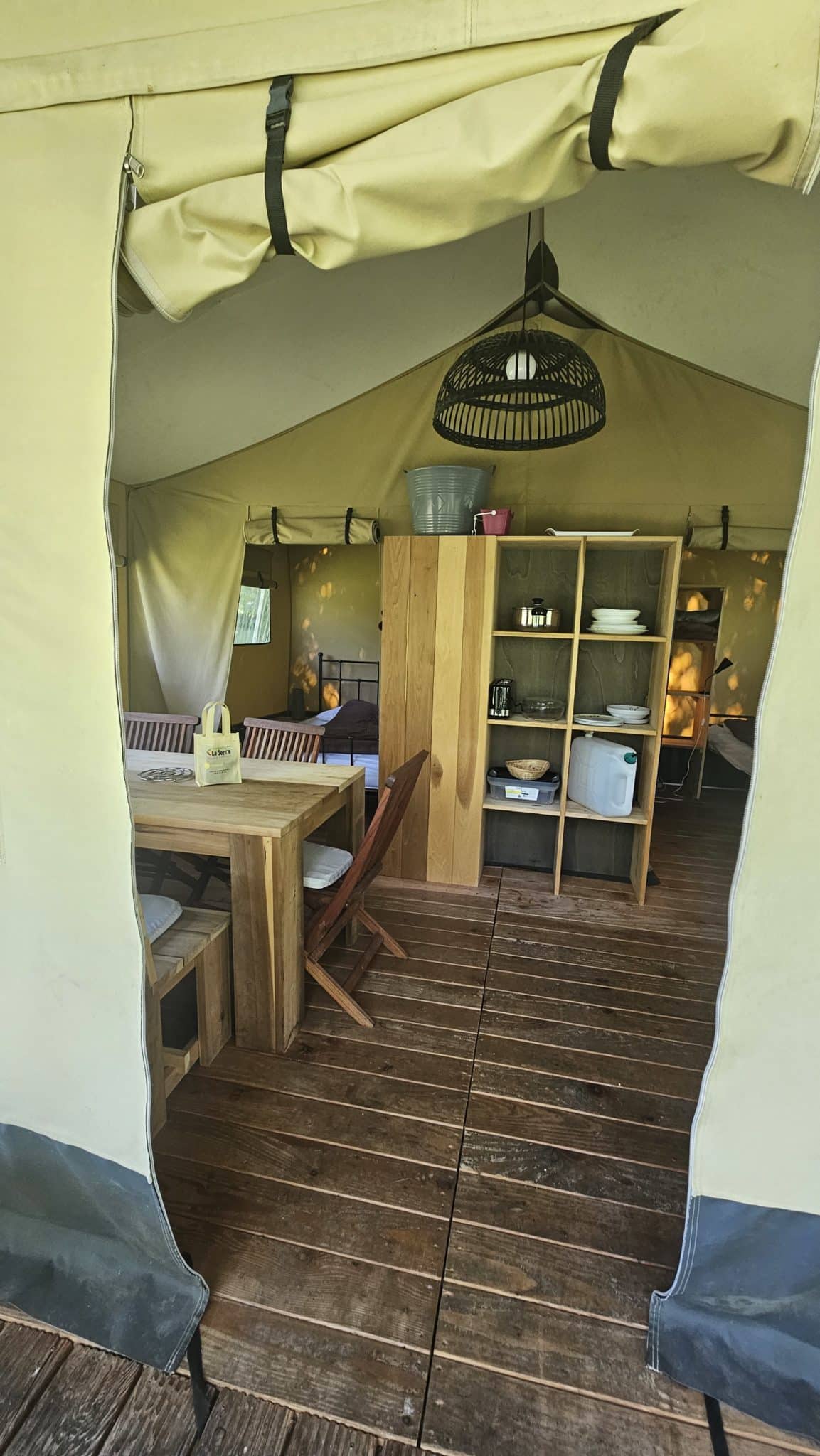 La tienda lodge, popular en los safaris para dormir en plena naturaleza, ha sido adoptada por el camping ecológico La Serre: la tienda lodge Safari Nature es a la vez una tienda al aire libre y una casa de vacaciones por derecho propio.