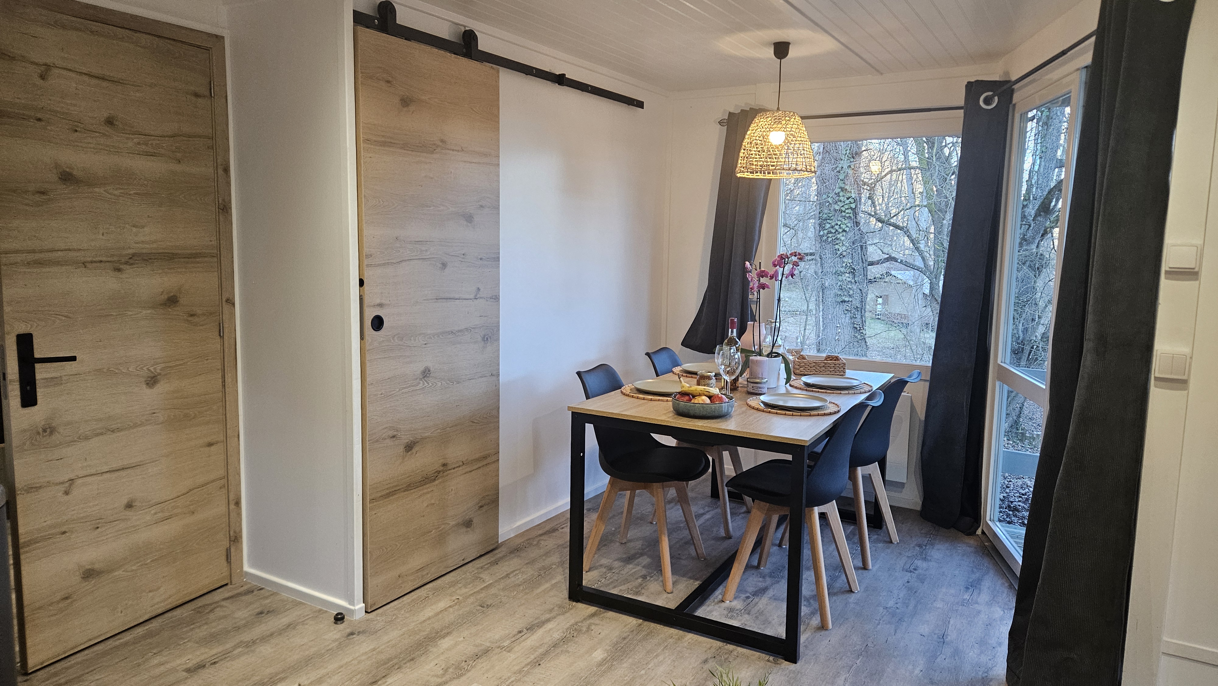 Salle de bain, coin cuisine, séjour, terrasse, tout est prévu pour que la location du chalet Confort réponde à votre besoin de confort.